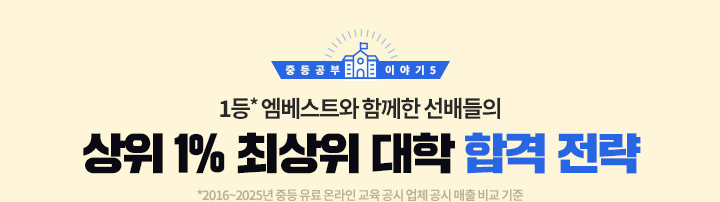 6Çгâ 2ÇбâºÎÅÍ ¿¥º£½ºÆ®·Î °øºÎ¸¦ ½ÃÀÛÇØ¼ Áö±Ý±îÁö ¸¸ 2³â Á¤µµ °øºÎÇØ¿À°í ÀÖ½À´Ï´Ù. Àú´Â ±¹¾î, ¼öÇÐ, »çȸ(¿ª»ç), °úÇÐ °ú¸ñÀ» ²ÙÁØÈ÷ µéÀ¸¸ç ÇнÀÇØ¿Ô½À´Ï´Ù. Çб³ ¼ö¾÷¸¸À¸·Îµµ ÃæºÐÇÒ ¼ö ÀÖÁö¸¸ ´õ ÁÁÀº ¼ºÀûÀ» ¹Þ°í ½Í¾î¼ ¿¥º£½ºÆ® °ÀÇ·Î ¿¹½À°ú º¹½ÀÀ» °è¼ÓÇß½À´Ï´Ù. ±× °á°ú Áö±ÝÀº Áß°£°í»ç¿Í ±â¸»°í»ç¿¡¼ ¿øÇÏ´Â ¼ºÀûÀ» ²ÙÁØÈ÷ ¹ÞÀ» ¼ö ÀÖ°Ô µÇ¾ú½À´Ï´Ù. ¿¥º£½ºÆ® ¼±»ý´Ôµé²²¼ °ÀǸ¦ Á¤¸» ÀßÇØÁÖ½Ã°í ´ãÀÓ ¼±»ý´Ô²²¼µµ Ç×»ó Á¦ ÇнÀ »óȲÀ» ²Ä²ÄÈ÷ »ìÆìºÁ Áּż ÁÁÀº °á°ú·Î À̾îÁ³´Ù°í »ý°¢ÇÕ´Ï´Ù. ¾ÕÀ¸·Î 1³â ´õ ¿¥º£½ºÆ®·Î °øºÎÇÒ ¼ö Àִµ¥ ³²Àº ½Ã°£µµ ¾ËÂ÷°Ô º¸³»±â À§ÇØ °è¼Ó ³ë·ÂÇÒ °Å¿¹¿ä. ^^